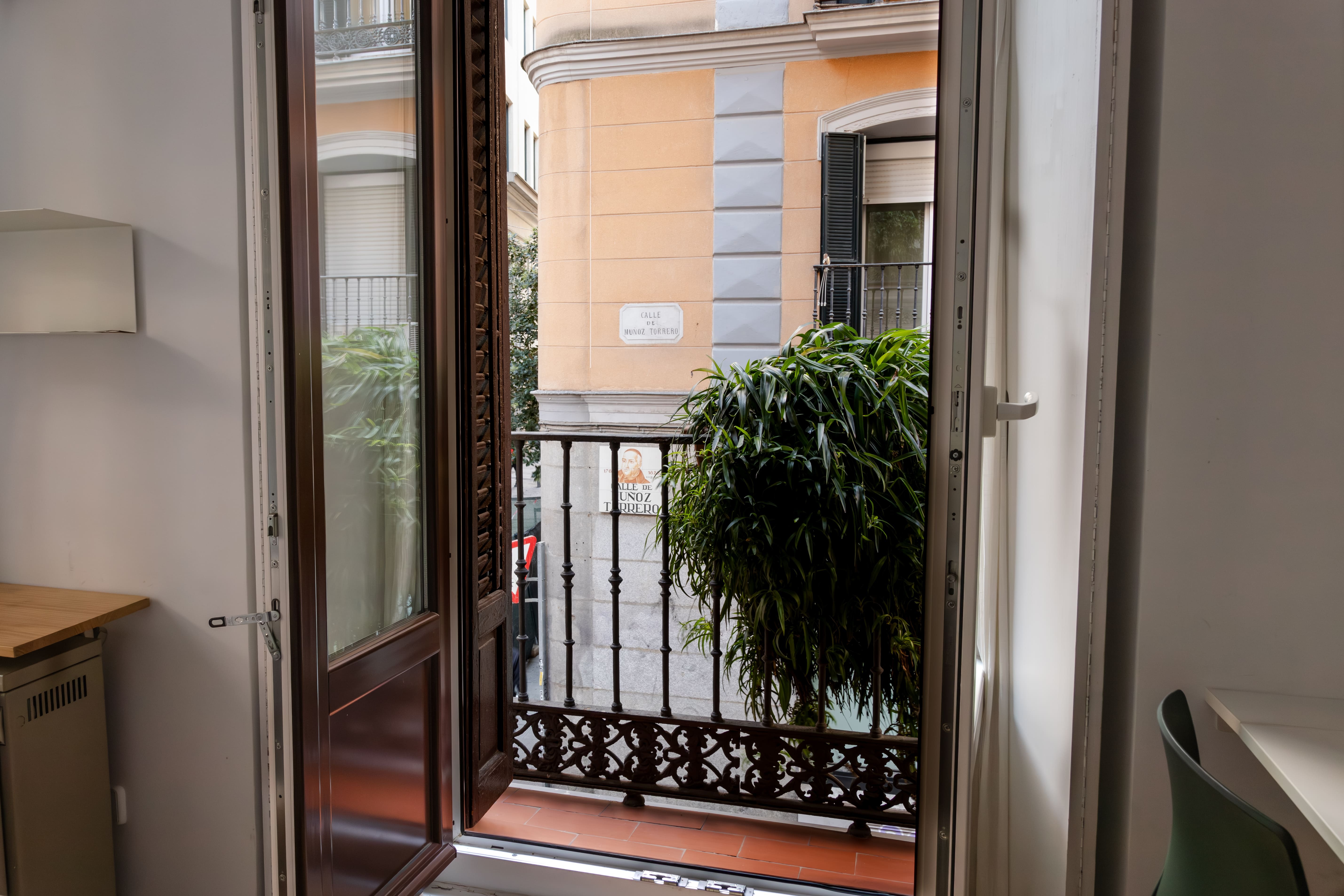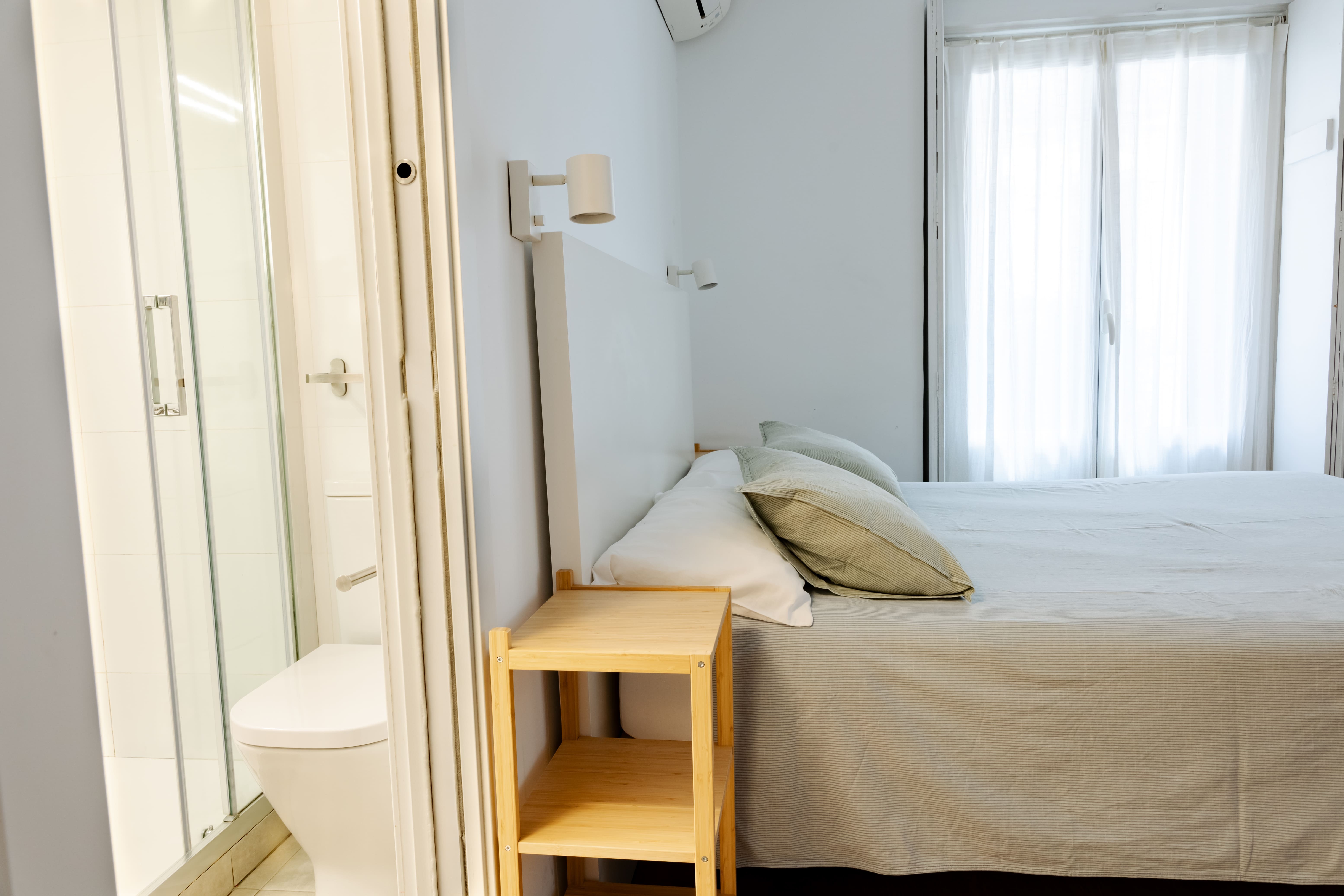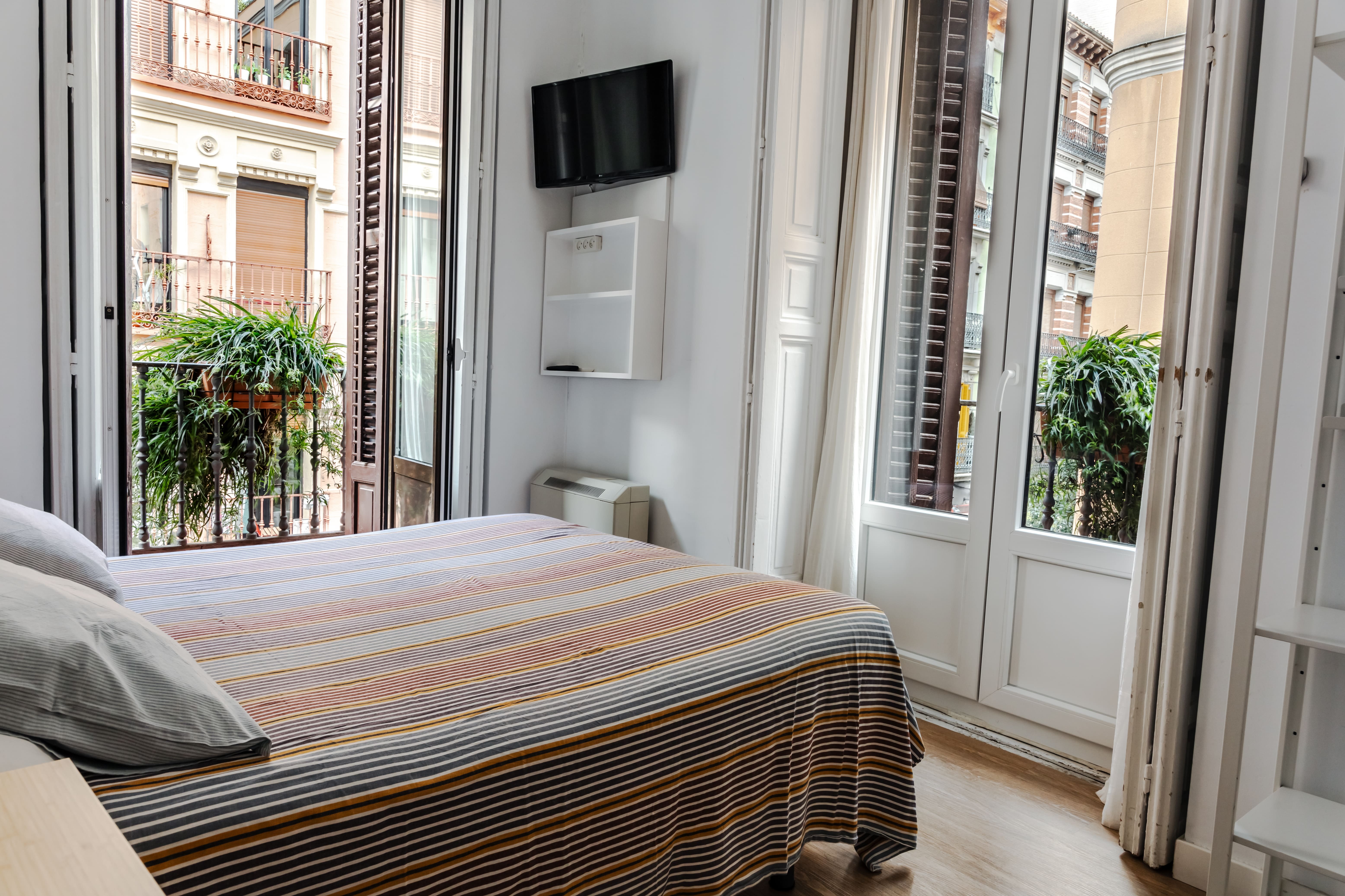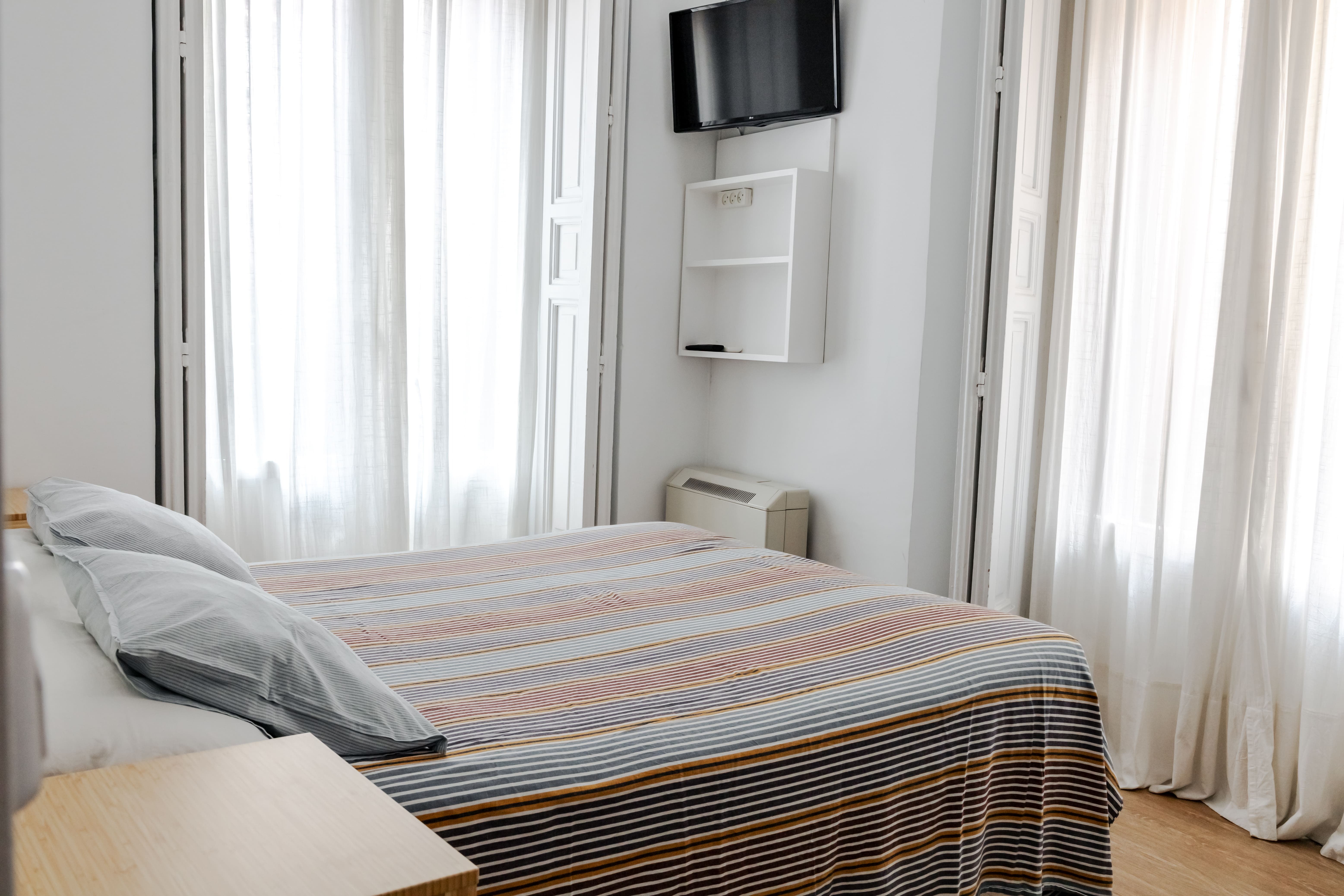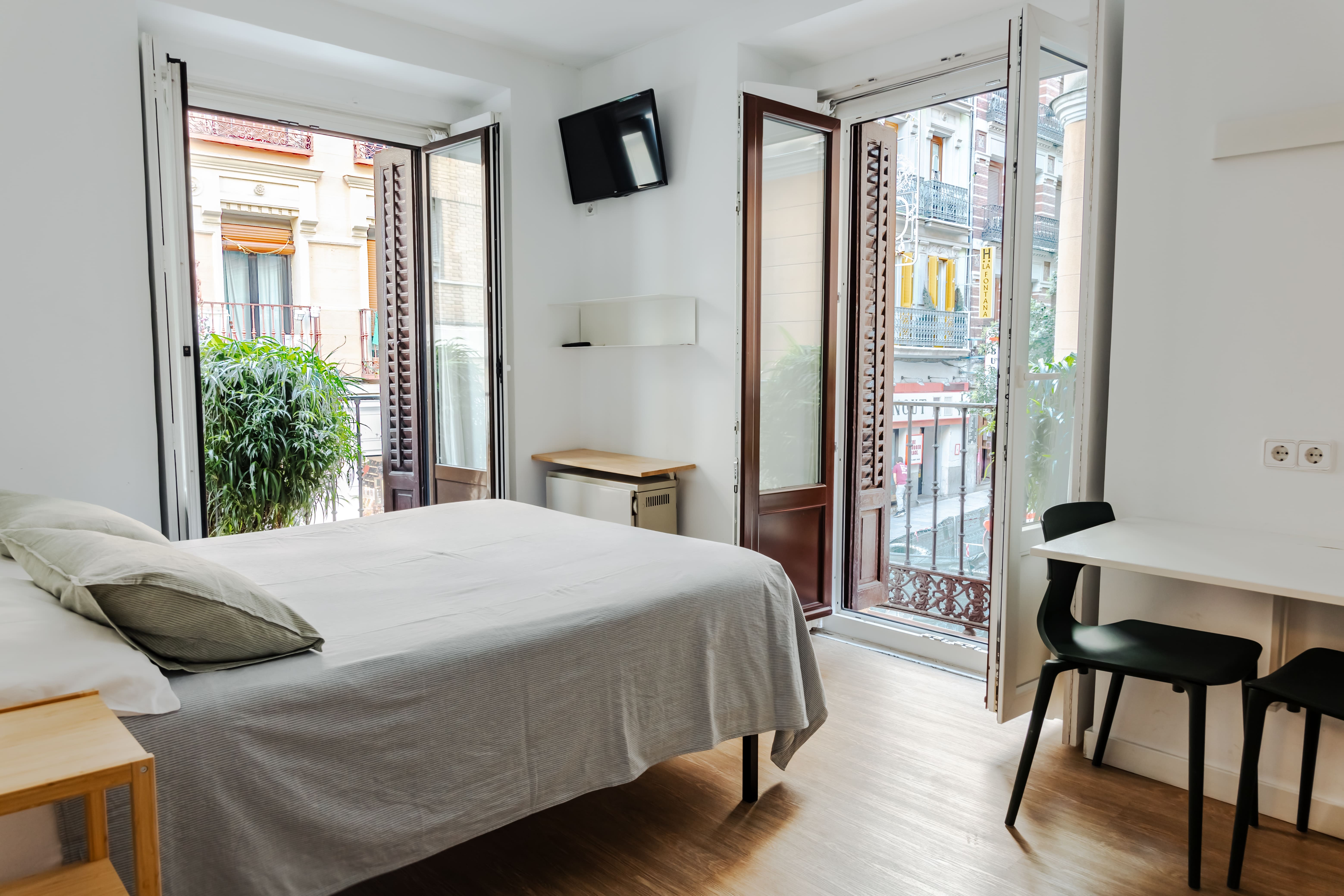 Habitación amplia y muy luminosa con 2 balcones en esquina. Ofrecemos tarifas para una o dos huéspedes. Tiene un baño amplio. Está equipada con mesa, wifi, aire acondicionado individual, calefacción central y TV.
